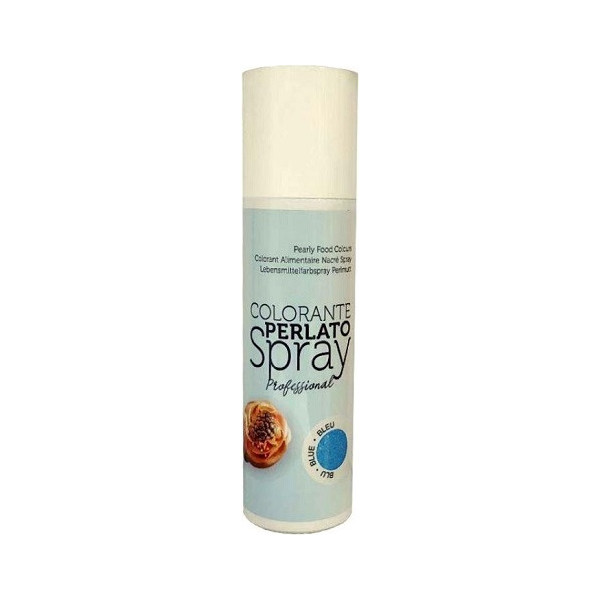 Colorante alimentare spray blu effetto perlato in bombola da 250 ml, ideale per colorare tutte le superfici alimentari congelate.