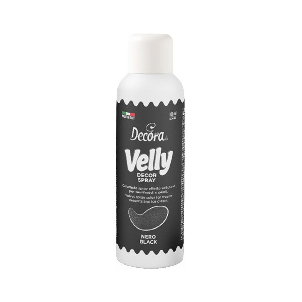 Decorvelly Spray Nero da 100 ml Decora: colorante alimentare spray effetto vellutato per uso alimentare in bomboletta da 100 ml, AZO free, ideale per decorare e colorare superfici fredde.
