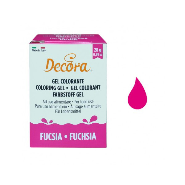 Colorante in gel fucsia principalmente indicato per masse ed impasti in confezione da 28 g.