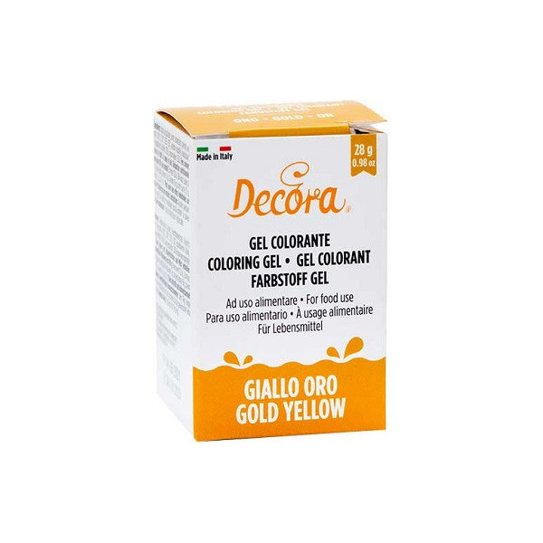 Colorante in gel oro principalmente indicato per masse ed impasti in confezione da 28 g.