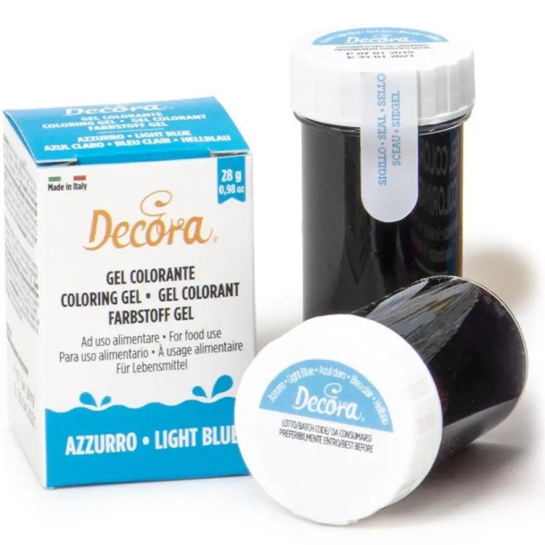 Colorante in gel azzurro principalmente indicato per masse ed impasti in confezione da 28 g, basta una piccola quantità per dare una tonalità di colore più intensa, decisa e splendente alle creazioni