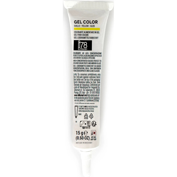 Colorante alimentare in gel giallo, di Silikomart, ad alta concentrazione, in un pratico tubetto richiudibile.