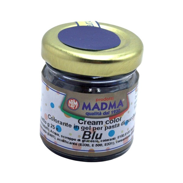 Cream Color blue, colorante in gel idrosolubile per pasta di zucchero in barattolo da 25 g, di Madma