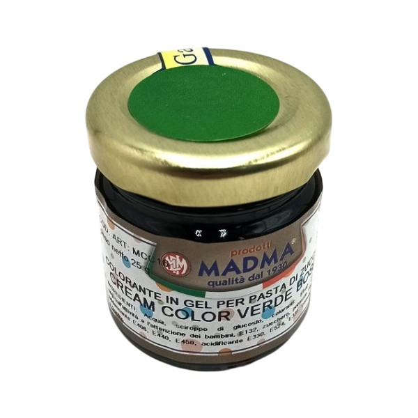 Cream Color verde scuro, colorante in gel idrosolubile per pasta di zucchero in barattolo da 25 g, di Madma