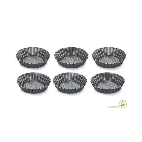Set 6 formine per crostatine tonde ø10 cm Vespa: 6 piccole teglie furbe in alluminio antiaderente per formine crostatine tonde con fondo rialzato di diametro 10 cm ed altezza 2,3 cm