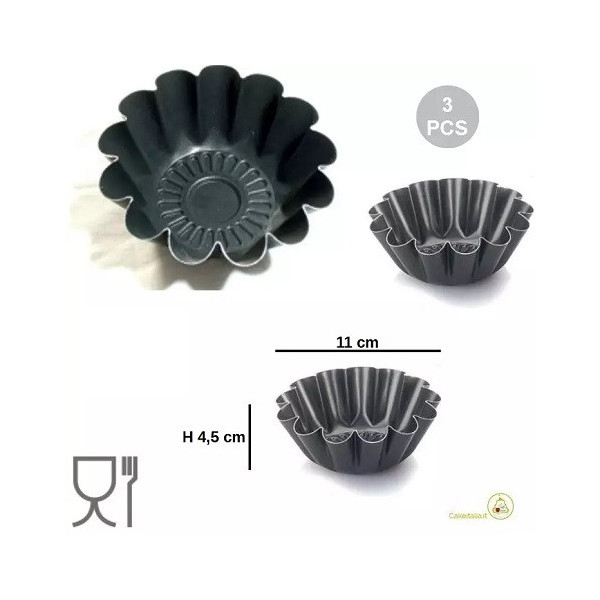 Set di 3 stampi da forno, formine per dolci budino con diametro superiore 11 cm, altezza 4,5 cm, in alluminio antiaderente da Vespa.