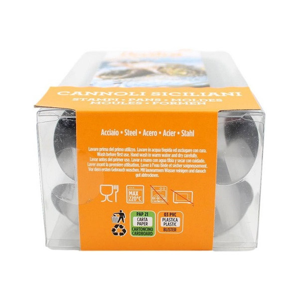 Confezione si 6 stampi da forno per formine Cannolo Siciliano o formine cannoli sgusciato in acciaio lungo 12 cm e diametro 2 cm