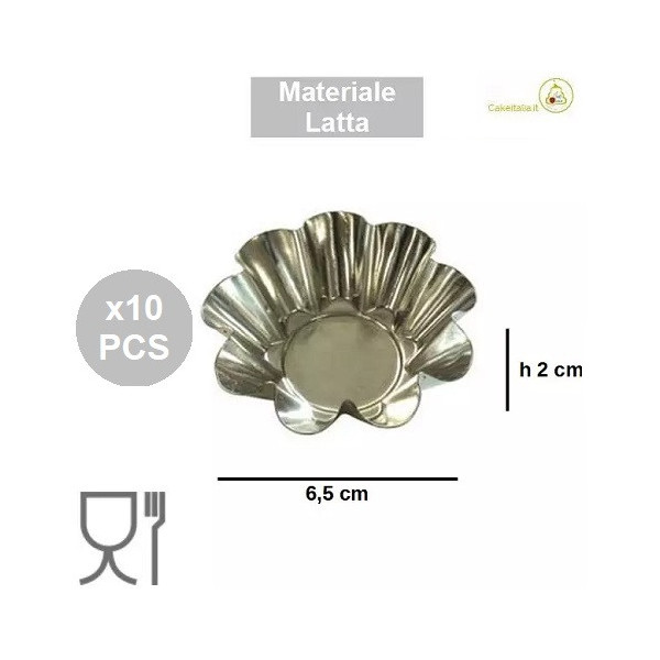 Set 10 formine margherita in latta ø6,5xh2 cm Vespa: stampi da forno in latta di formine margherita dal diametro di 6,5 cm per 2 cm di altezza, per monoporzioni dolci o salate a forma di margherita, per uso intensivo e professionale.