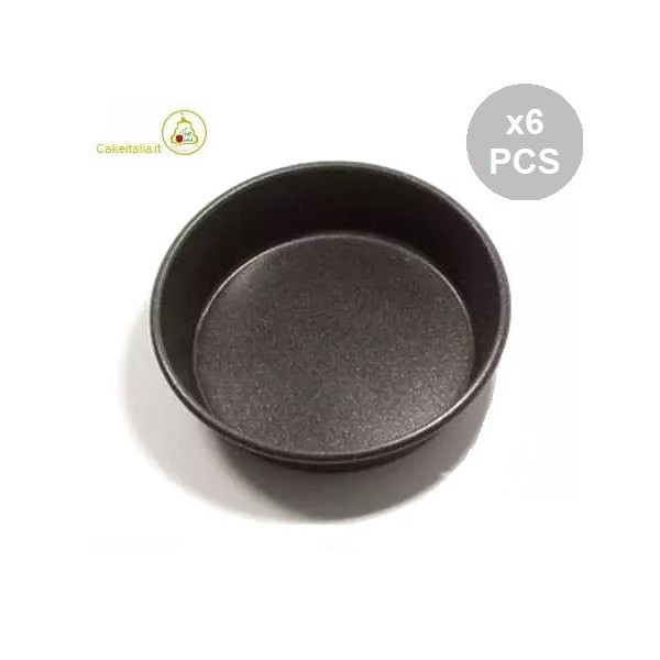 Set 6 formine tonde lisce con bordo, di diametro 8 cm ed altezza 2 cm in alluminio antiaderente, teflonato, da Vespa dolci forme, formine ideali per preparazioni tonde dolci o salate o per briochette tonde con lievitazione verticale.