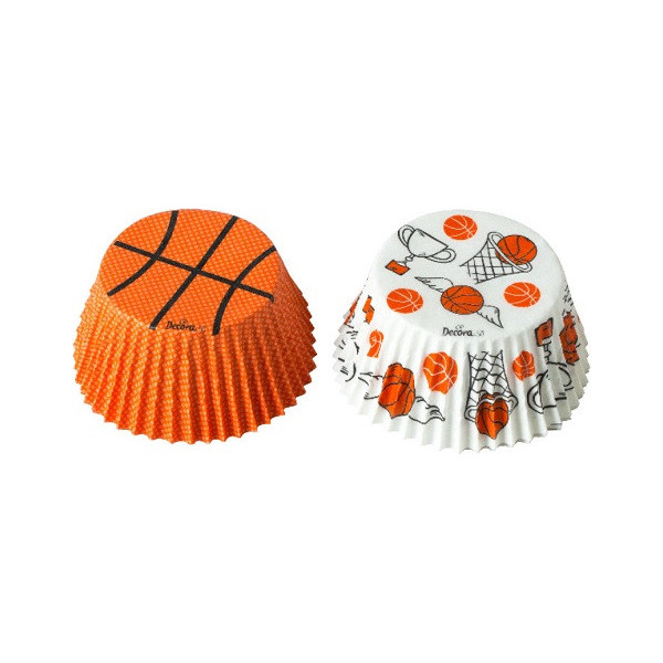 36 Pirottini muffin Basket: carta forno con decori colorati coppa, canestro e pallone da Basket, diametro 5 cm h 3,2 cm da Decora. Ideali per cuocere, presentare e regalare dolcetti.