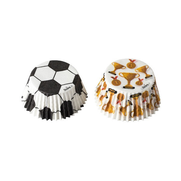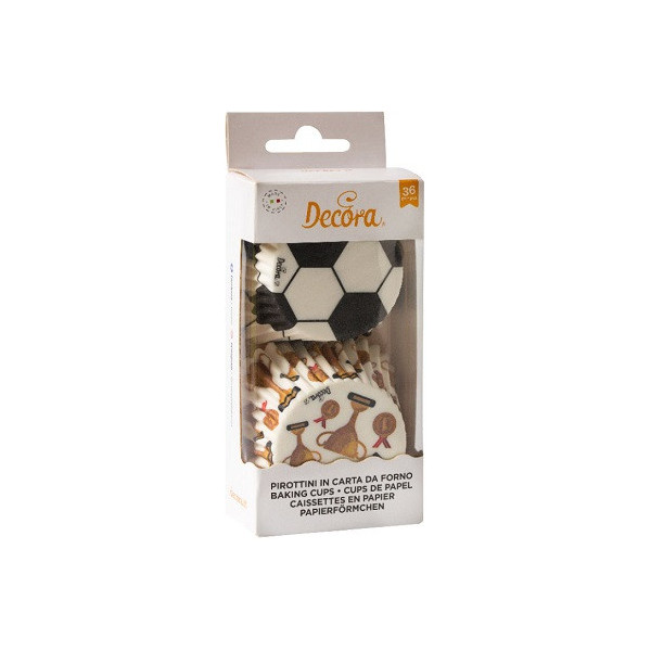 36 Pirottini muffin Champions, da Decora, in carta con decori a tema calcio, di ø5xh3,2 cm