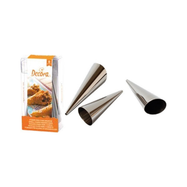 Set 8 formine coni in acciaio inox da Decora: 8 stampi da forno per realizzare dolci o salati a forma di coni mignon da Ø 2,5 x h 8 cm o coni normali da Ø 4 x h 12 cm