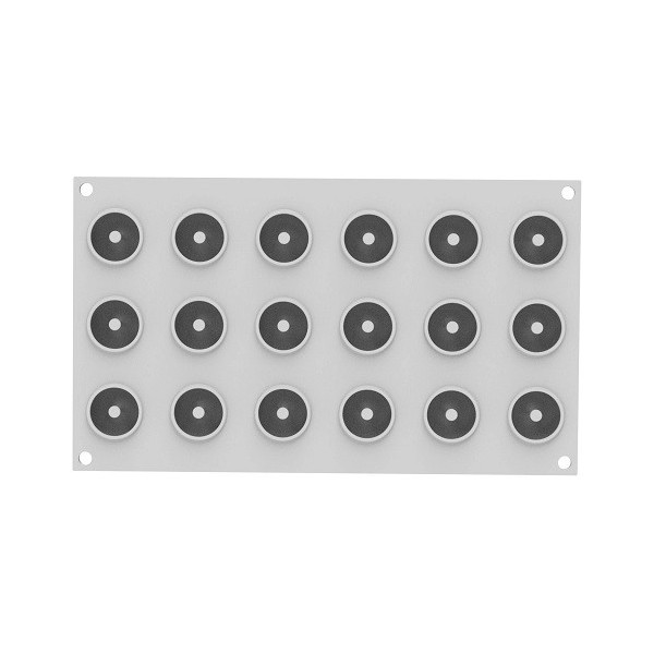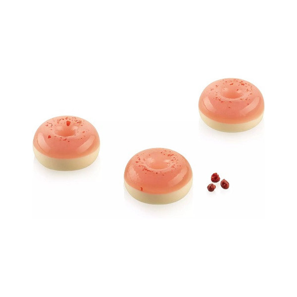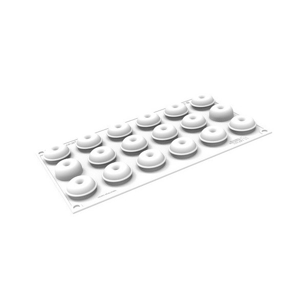 Stampo in silicone per 18 deliziose Donut XS o mini dessert ciambelline da Silikomart.