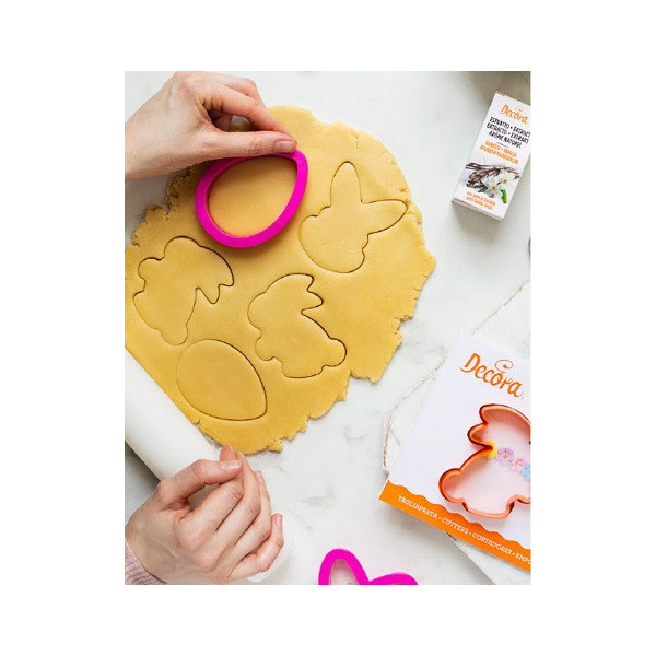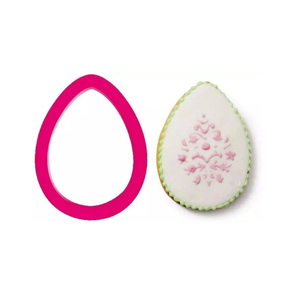 Tagliapasta uovo Decora: sagoma in plastica a forma di uovo 8x5,5xh2 cm, usalo per realizzare biscotti o per sagome salate o dolci a forma di uovo in pasta di zucchero, pasta di gomma o cioccolato.