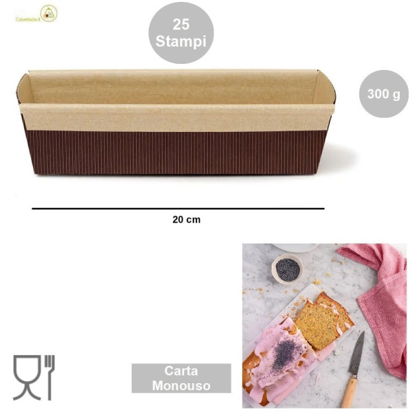 25 Stampi in carta cellulosa per torte plum-cake, di lunghezza 20 cm, altezza 4,5 cm. Gli stampi in carta forno usa e getta o monouso sono ideali per torte plumcake da 300 g