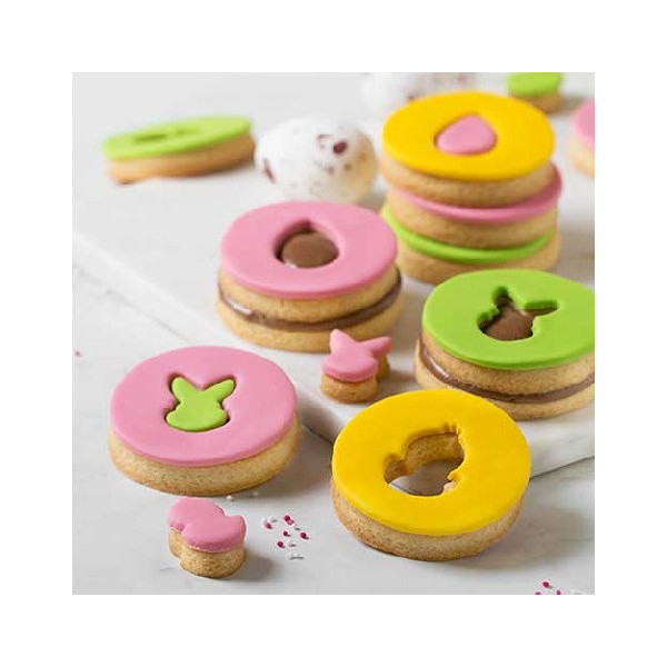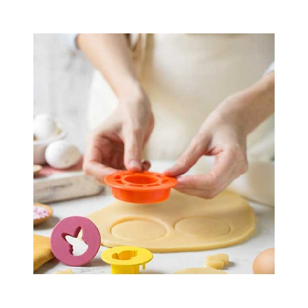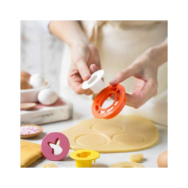 4 Taglia-biscotti Occhi di Bue Pasqua Mix and Match in plastica da Decora
