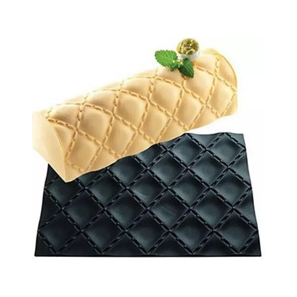 Texture Matelassé Silikomart, Tex03 da 25 x 19 x h 0,6 cm: tappetino decorativo per torte con tessitura, trama o decoro matelassé, ad effetto tessuto imbottito o trapuntato.