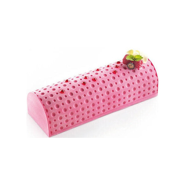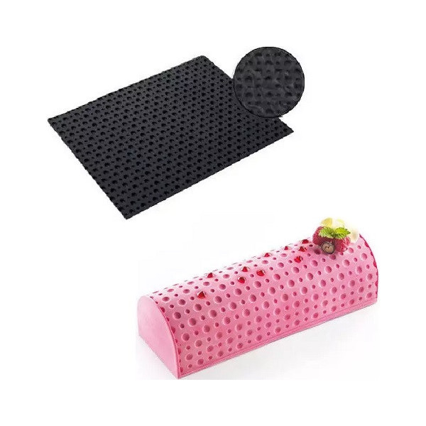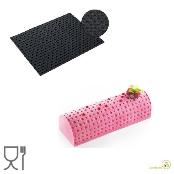 Tappeto decorativo in silicone professionale (colore nero) per decorare torta a forma di tronchetto con una tessitura ed effetto Pois o Puà, a pallini o puntini.