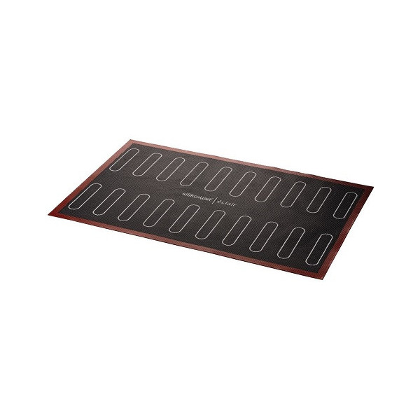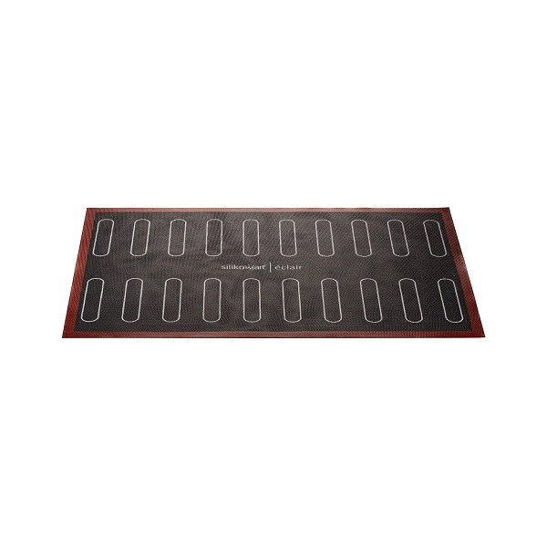 Il tappetino in silicone microforato Air Mat Éclair Silikomart (583×384 mm) è studiato per garantire una cottura uniforme e croccante di éclair e mini-éclair.