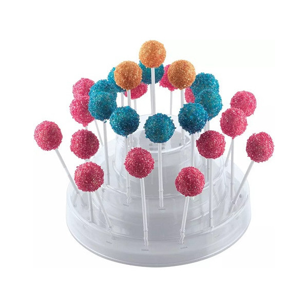 - espositore per Lollypop, si usa con entrambe le parti, sia colorata che trasparente sovrapposte, per presentare 27 cake pops decorati cioè lo usi come espositore di 28 dolcetti (cake pops o easy pop) su bastoncini di carta.
