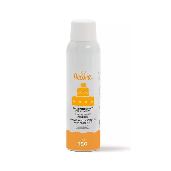 Lucidante Spray 150 ml da Decora è ideale per cioccolato, pasta di zucchero, crema al burro, marzapane e pasta di gomma.