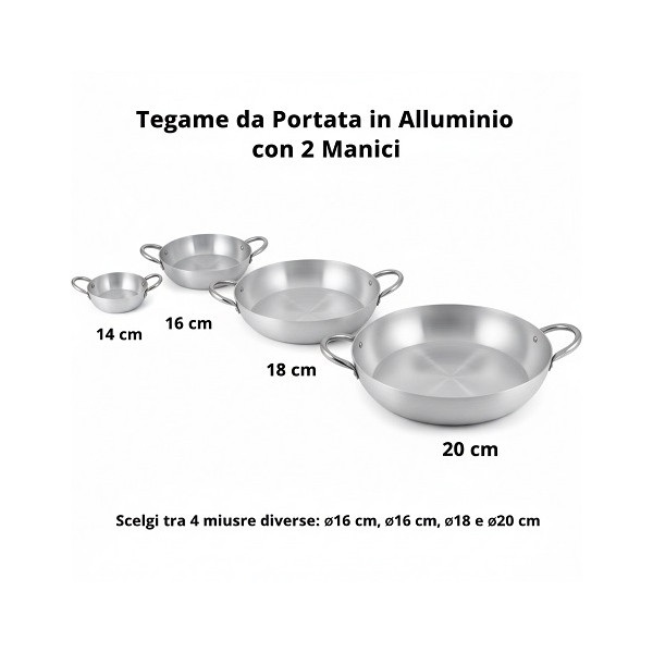 Tegame da portata in alluminio con due manici di diametro 14, 16, 18 o 20 cm: tegame tondo spessore 0,8 mm, specifico per presentazione