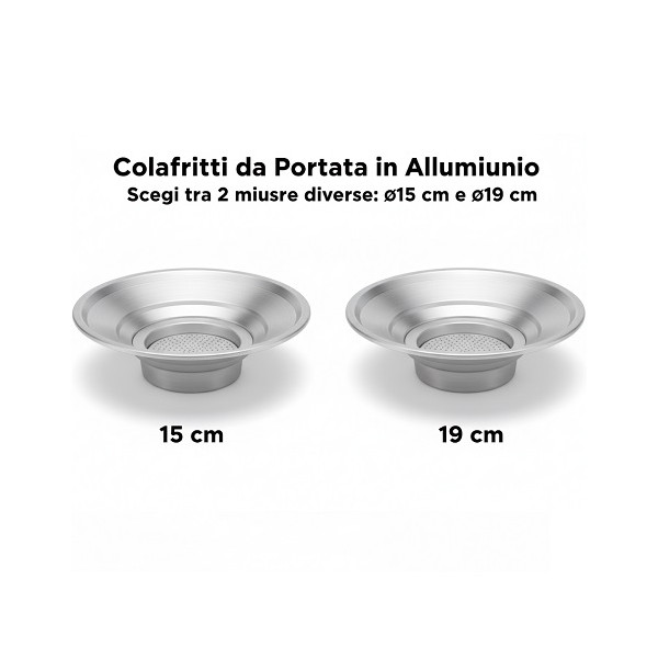 Colafritto da portata per monoporzioni in alluminio: versatile piatto a doppia funzionalità, usalo come colafritto grazie al raccoglitore per l'olio e / o come piatto da portata di ø15 o ø19 cm cm