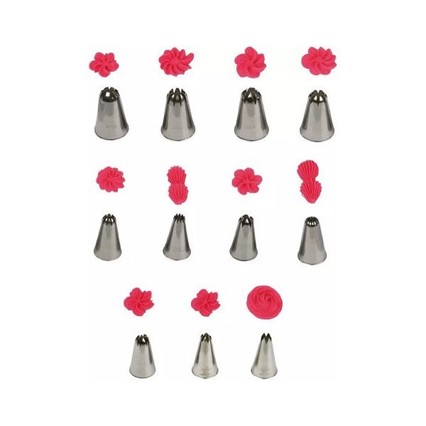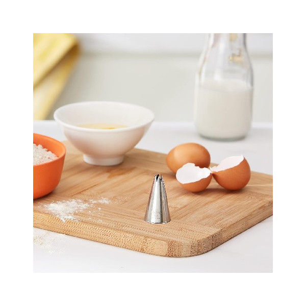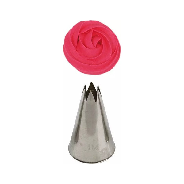 La bocchetta 1M, è dotata di 6 punte, è ideale anche per la realizzazione di rose in crema al burro, ganache o panna, ma anche stelle, conchiglie e ghirlande.