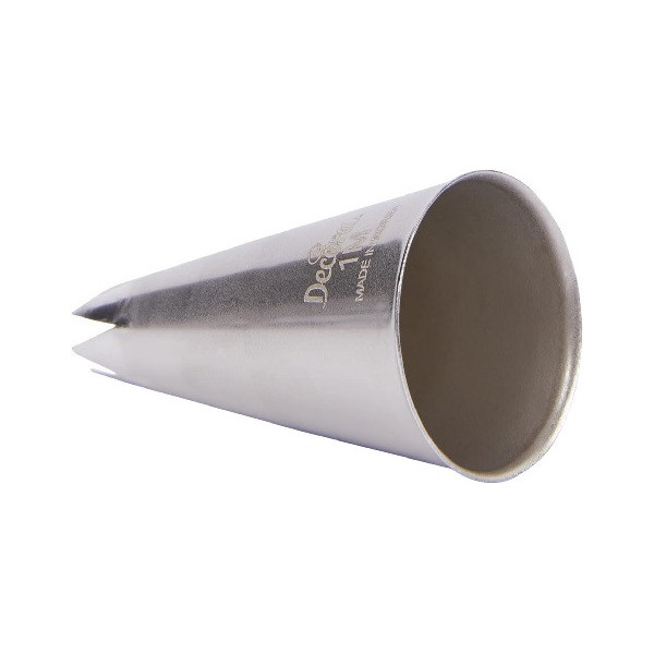 Cornetto per farcitura in acciaio inox di base ø1,8cm, foro uscita obliquo ø0,5 cm ed h6.3 cm Decora: beccuccio o bocchetta n. 230 da decorazione, senza punti di saldatura, lavabile in lavastoviglie e riutilizzabile da Decora.