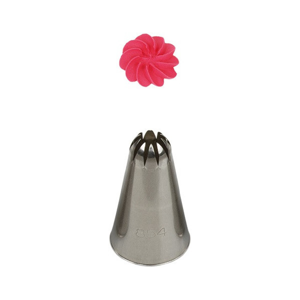 La bocchetta 1M, è dotata di 6 punte, è ideale anche per la realizzazione di rose in crema al burro, ganache o panna, ma anche stelle, conchiglie e ghirlande.