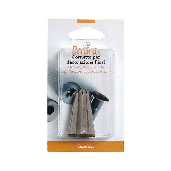 Beccuccio o bocchetta in blister, in acciaio inox senza punti di saldatura, Decora. Ideale per creare Fiori grandi da decorazione, lavabile in lavastoviglie e riutilizzabile.
