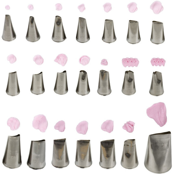 Serie di beccucci o bocchette per petali da decorazione, lavabile in lavastoviglie e riutilizzabile da Decora.