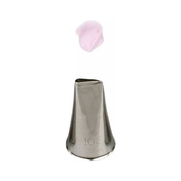 Cornetto Bocciolo di Rosa in acciaio inox Decora: beccuccio o bocchetta n. 243 per fiori 3D da decorazione diretta su torte e dolcetti, senza punti di saldatura, riutilizzabile.