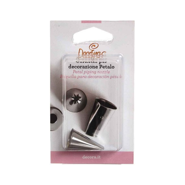 Cornetti petalo in varie forme in acciaio Inox Decora: beccuccio o bocchetta per Petali da decorazione, lavabile in lavastoviglie e riutilizzabile da Decora. Ideale per decorazioni esclusive di torte con petali in panna.