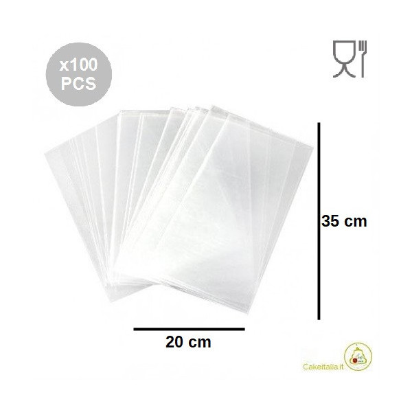 100 Buste cast neutre, piatte di dimensioni 20x35 cm e spesse 35 micron, da Decora: buste trasparenti per dolci.