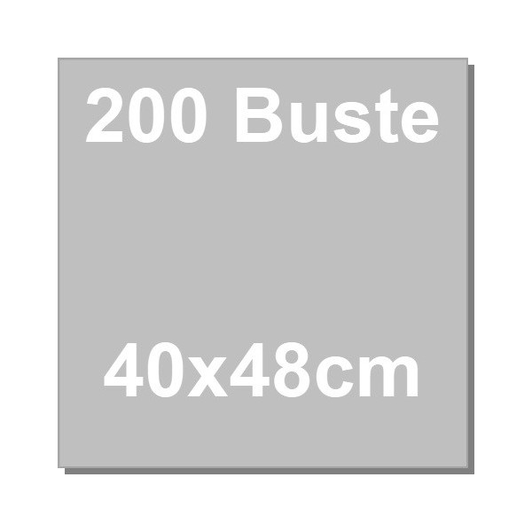 Dimensioni buste: larghezza 40 cm, lunghezza 48 cm, spessore 35 micron