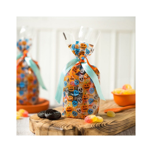 Sacchetti Halloween da Decora. Confezione di 20 sacchetti in plastica per alimenti zucche e teschi Halloween. Sacchetti per caramelle, marshmallow, biscotti e dolciumi