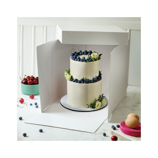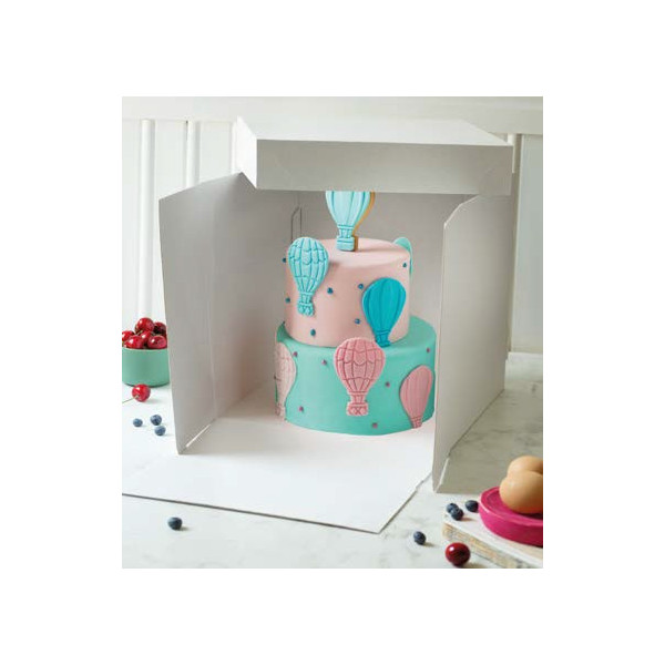 Si consiglia di utilizzare questa scatola per il trasporto e la conservazione di torte farcite a più piani, wedding cake e dolci alti decorati.