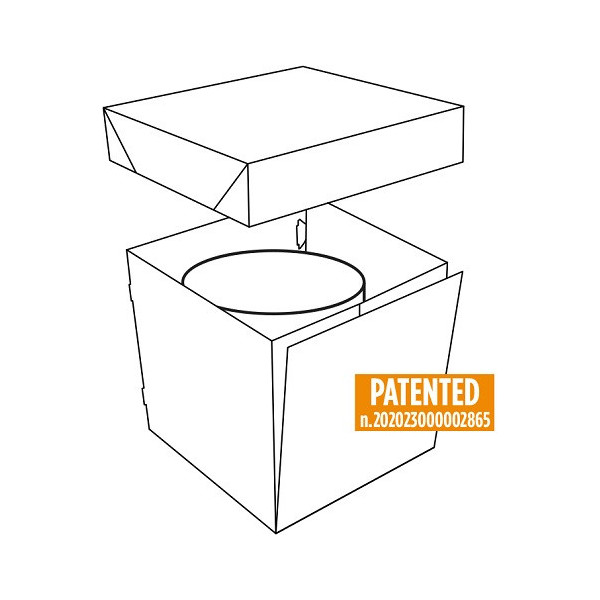 Box torta in cartone per alimenti in microonda di alta qualità, facile e veloce da montare grazie alle alette ad incastro che bloccano le pareti rendendo la scatola molto stabile.