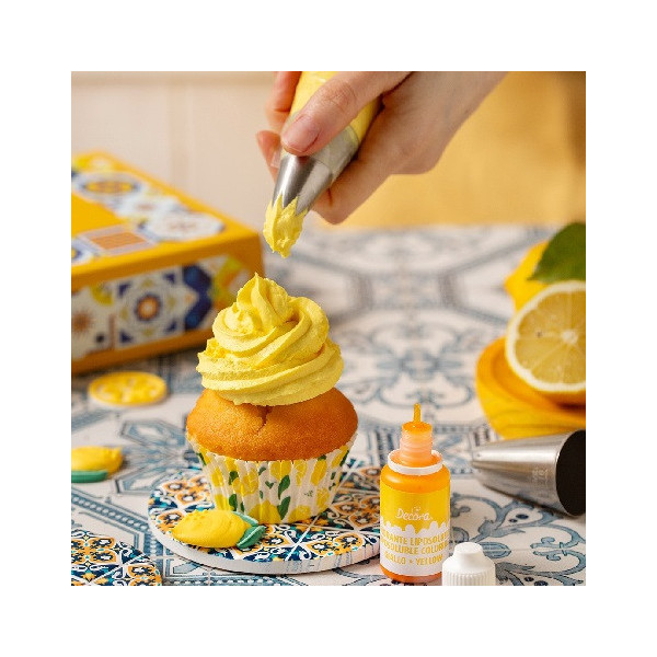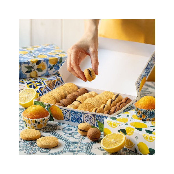 Scatola portadolci rettangolare piastrella limoni Decora: box auto-montante in cartone per alimenti, 23x16xh5 cm, ideale per confezionare pasticcini, ciambelle, cupcakes, biscotti e piccoli dolcetti