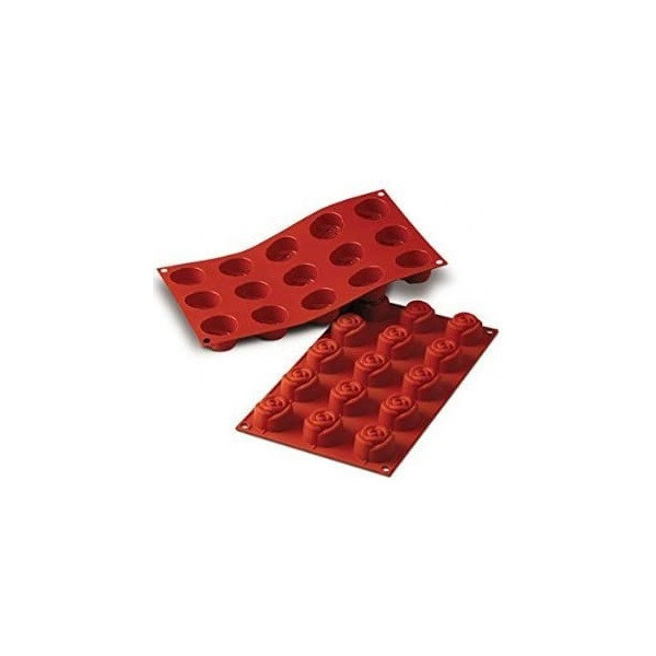 Rose Silikomart: stampo silicone per 6 rose di diametro 7,6 cm ed altezza 4 cm o stampo silicone per 15 rose piccole o roselline di diametro 4,4 cm ed altezza 2,7 cm