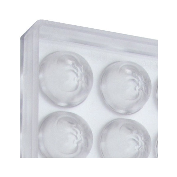 Stampo in policarbonato professionale vi permetterà di realizzare dei cioccolatini a forma boero con ciliegie nel modo più preciso. Ogni placca, contiene 28 cavità di diametro 27,6 mm e 21 mm di altezza