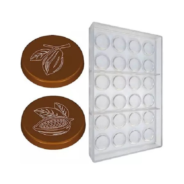 Stampo in policarbonato professionale vi permetterà di realizzare dei cioccolatini a forma di cialda nel modo più preciso. Ogni placca, contiene 24 cavità per praline da circa 3 gr l'una