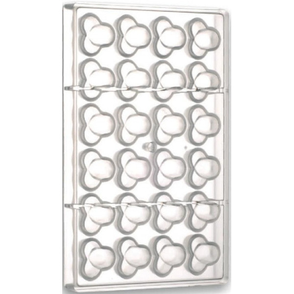 Stampo in policarbonato professionale vi permetterà di realizzare dei cioccolatini a forma di tre nocciole nel modo più preciso. Ogni placca, accoppiabile, contiene 24 cavità da mm 33x35 - h 19 mm