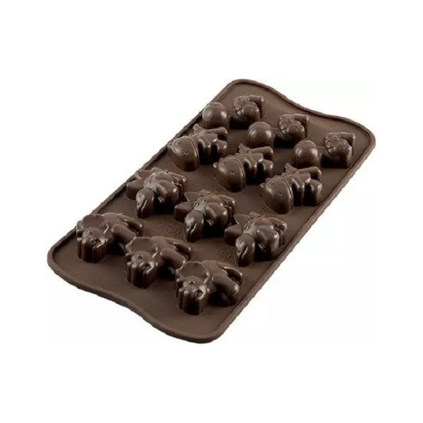 Caratteristiche stampo cioccolatini Dino Silikomart: Misura Stampo: 40x33xh 16 mm Materiale Stampo: silicone Colore Stampo: marrone Numero Cavità / Cioccolatini: 12 Volume: 96 ml