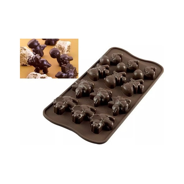 Lo stampo Choco Dino o stampo Mini Dinosauri è uno stampo per cioccolatini in silicone per 12 cioccolatini aventi la forma di 4 diversi mini dinosauri da Silikomart linea Easy Choc.