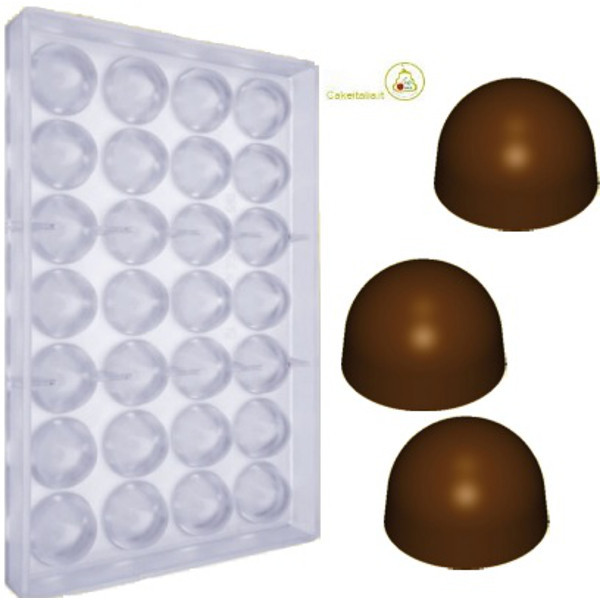 Cioccolatino tondo o sferico da 7 g: stampo in policarbonato per 32 cioccolatini a forma tondi o sferici dal peso di 7 g, di diametro 28 mm ed altezza 19 mm
