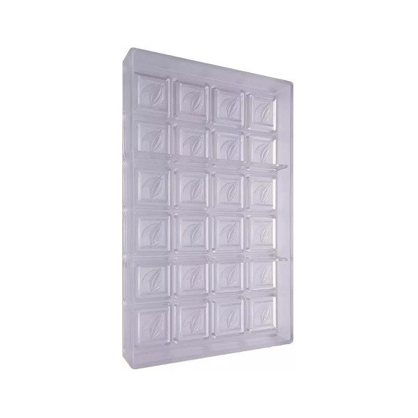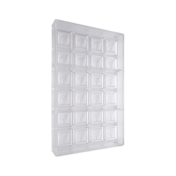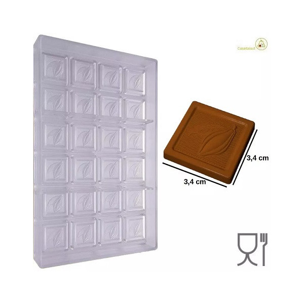 Stampo cioccolato in policarbonato per 24 cioccolatini a forma quadrata da 3,4 cm altezza 0,51 cm con decoro cabossa 6 g.