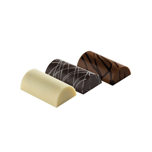 Stampo in policarbonato professionale vi permetterà di realizzare cioccolatini a forma di cilindri nel modo più preciso. Pratico da usare grazie alla forma brevettata dello stampo che permette la presa dello stampo con un unica mano.