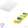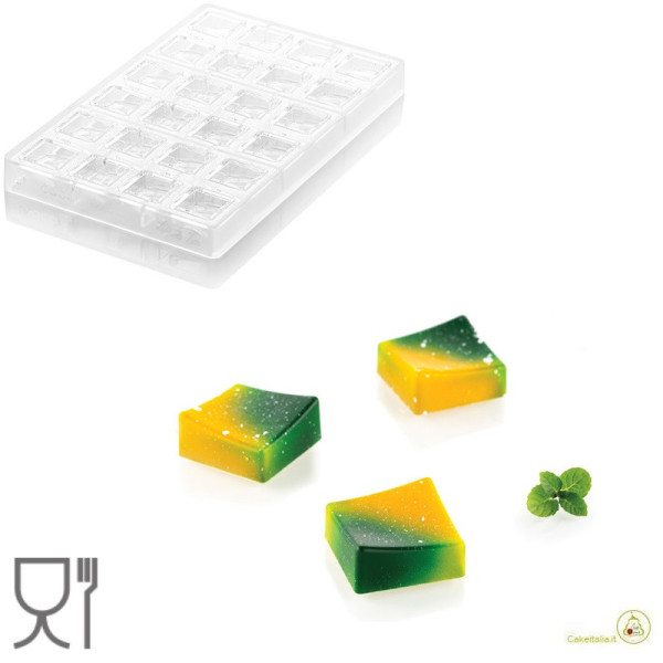 Con lo stampo Onda P Silikomart, hai 24 cavità a base quadrata di lato 2,85 cm ed alte 13 mm e volume 8 ml.